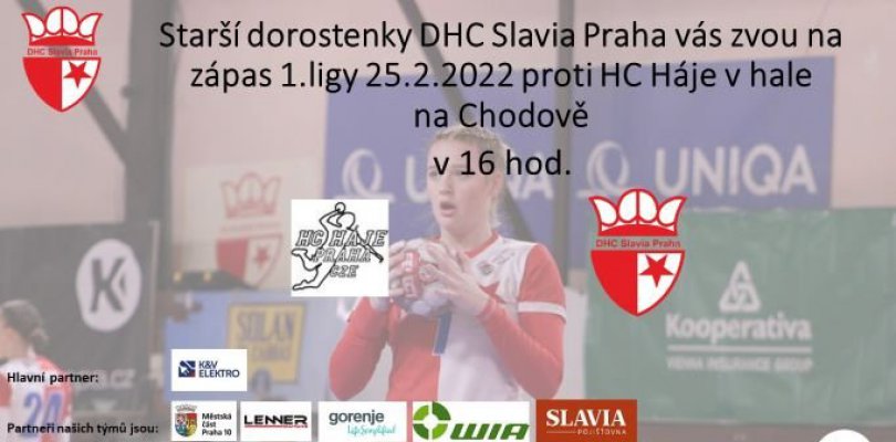 Starší dorostenky napočtvrté se pokusí dohrát zápas HC Háje - DHC Slavia Praha v pátek 25.2. od 16 h a hraje se v hale na CHodově.
