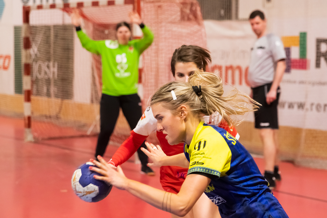 V první polovině se domácí hráčky nesoustředily zejména ve střeleckých pozicích a nechávaly vyniknout hostující brankářku Písku. Poločas 11:13.