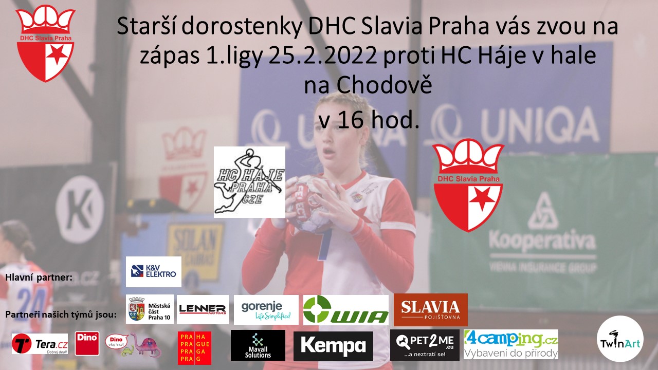 Starší dorostenky napočtvrté se pokusí dohrát zápas HC Háje - DHC Slavia Praha v pátek 25.2. od 16 h a hraje se v hale na CHodově.